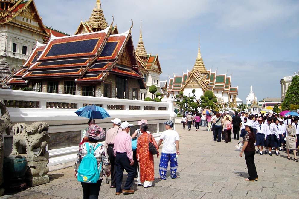 ホテルで各自朝食を済ませて観光へ出発、まず最初に三大寺院のワットプラケオ&王宮、ワットポー、ワットアルンを見学