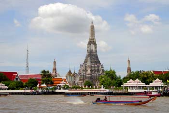 チャオプラヤー川に面する人気レストランのテラス席で、対岸にワットアルンを眺めながらスパイシーなタイ料理をお楽しみください。