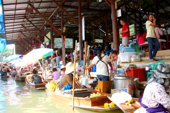 朝方が賑わう水上マーケットへご案内、ボートに乗船してマーケット内を遊覧、船上でショッピングや食べ歩きをお楽しみください。