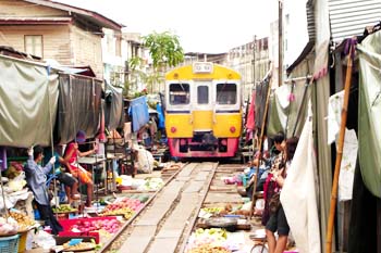 列車が通過する時間になると線路が現れる不思議な市場を見学