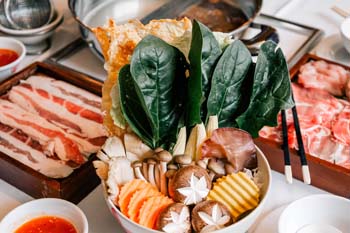 タイ名物のタイ風すきやき(タイスキ)、またはタイ風焼肉(ムーガタ)のレストランへご案内します。